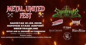 Wo: Airport Obertraubling/Regensburg Wann: 01.08.2026 Wieviel: 45,40€ Wie in jedem Jahr findet das Metal United an demselben Wochenende statt wie das Wacken Open Air. Denn… Aus dem Metal United Festival wird das Metal United Fest!!! weiterlesen