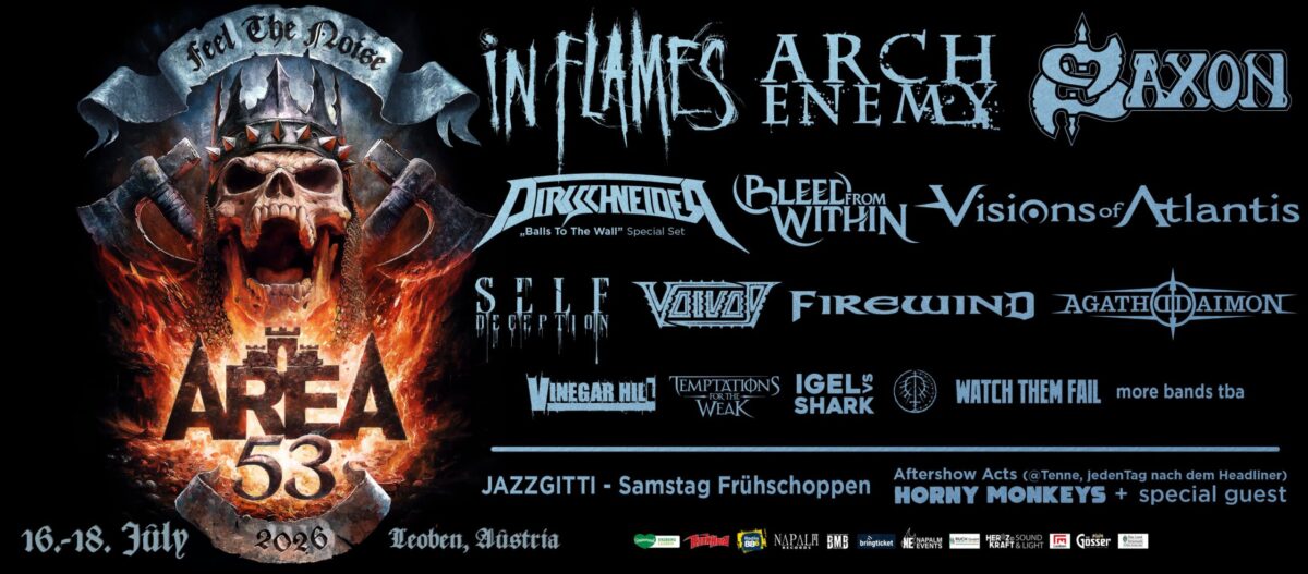 3 Tage, werden tausende Metalheads nach Leoben pilgern. Das AREA53 Festival findet 2026 wieder wie gewohnt im Herzen der Steiermark statt. Von 16. – 18. Juli wird Leoben wieder zur Metalhauptstadt Österreichs gekürt.