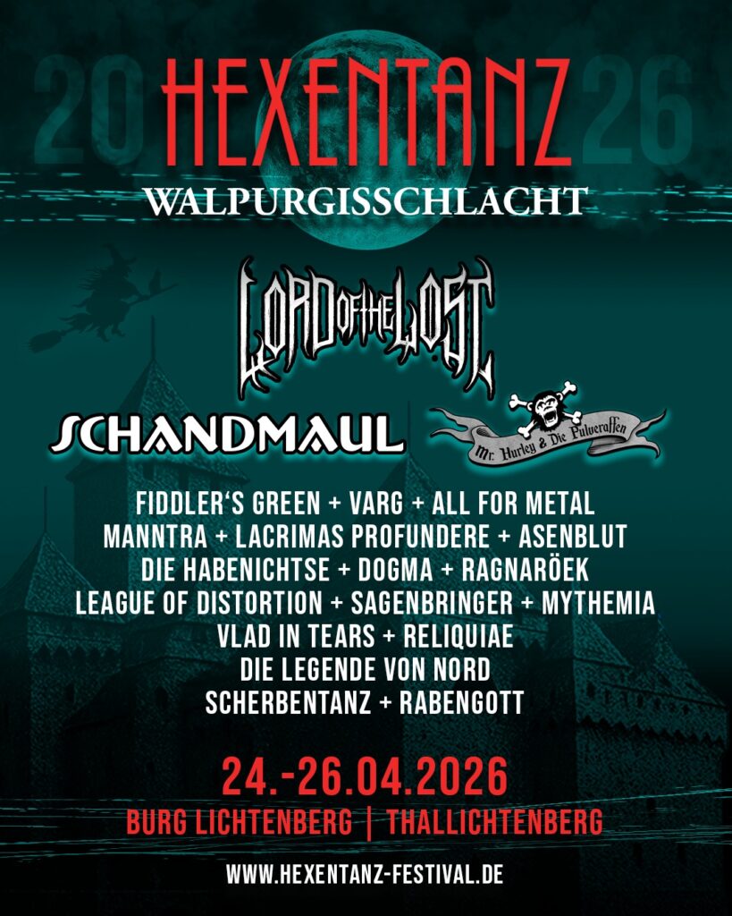Zum insgesamt 18. Mal findet dann das „Hexentanz Festival“ inzwischen statt und auch 2026 wird an den drei Tagen wieder auf Burg Lichtenberg gefeiert und gerockt.