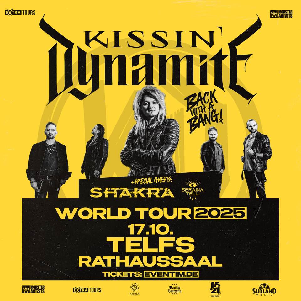 Nach zahlreichen internationalen Shows – von Südamerika bis Europa – bringen Kissin’ Dynamite ihre energiegeladene Live-Show nun nach Tirol. Ein Abend voller Power, Emotionen und echter Rockmomente wartet – live, laut und unverfälscht in Telfs.