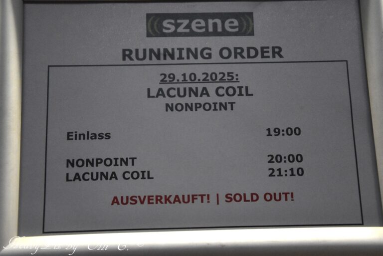 Das ausverkaufte Konzert von LACUNA COIL mit NONPOINT in Wien war mehr als nur eine Show – es war ein Ereignis. Die Wahl des kleinen, intensiven Venues, die starke Performance von NONPOINT als Support und die überzeugende Darbietung von LACUNA COIL machten den Abend zu einem Live-Highlight für Freunde von Alternative Metal, Gothic Metal und energiegeladenem Rock. Wer nicht dabei war, hat definitiv etwas verpasst.