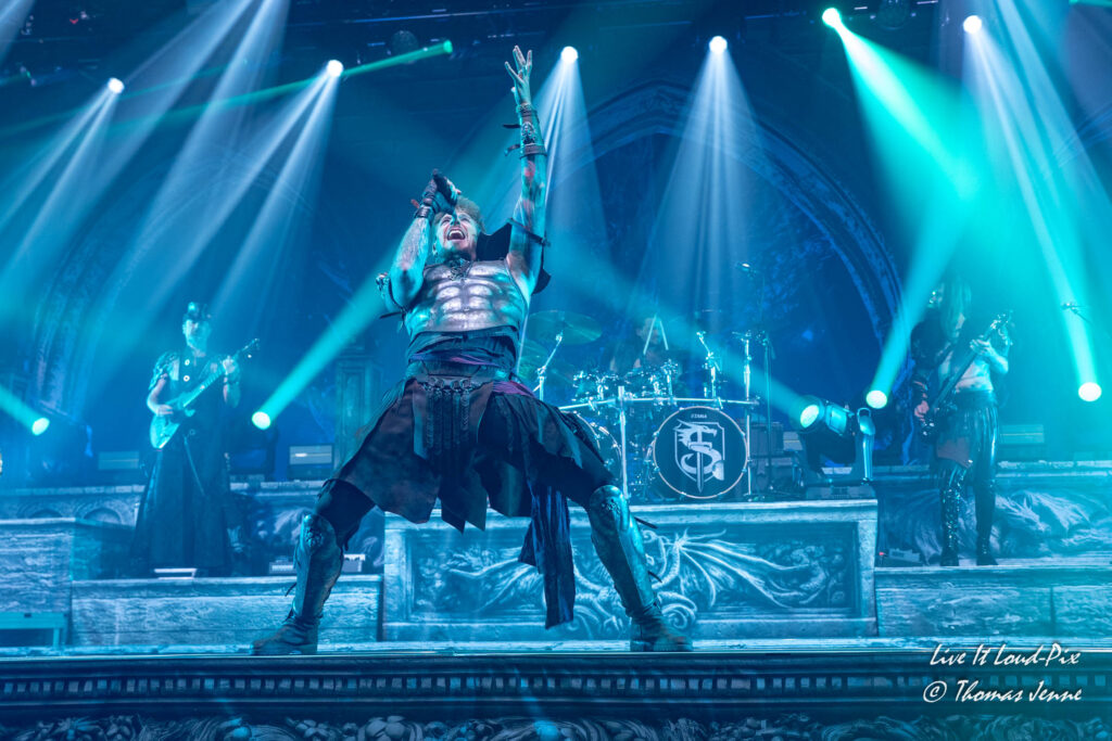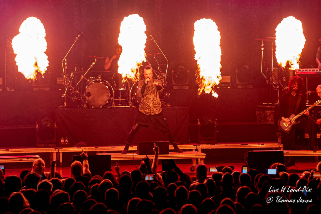 Weiter geht`s mit Lord OF THE LOST, die gerade ihr neues Album „OPUS NOIR Vol.1“ veröffentlicht haben und als erster der beiden Headliner auf die Bühne dürft. Zweifel, ob LOTL und FEUERSCHWANZ musikalisch überhaupt zusammenpassen würden, kann man getrost schnell beiseite schieben. Die Stimmung ist sofort bestens, was auch sicherlich an den Ansprachen von Frontmann Chris Harms liegt, der gekonnt mit witzigen Gags das Publikum zwischen den Songs unterhält und für einige Lacher sorgt.