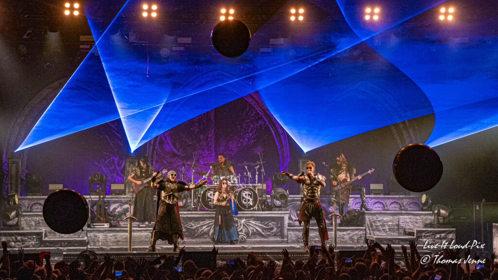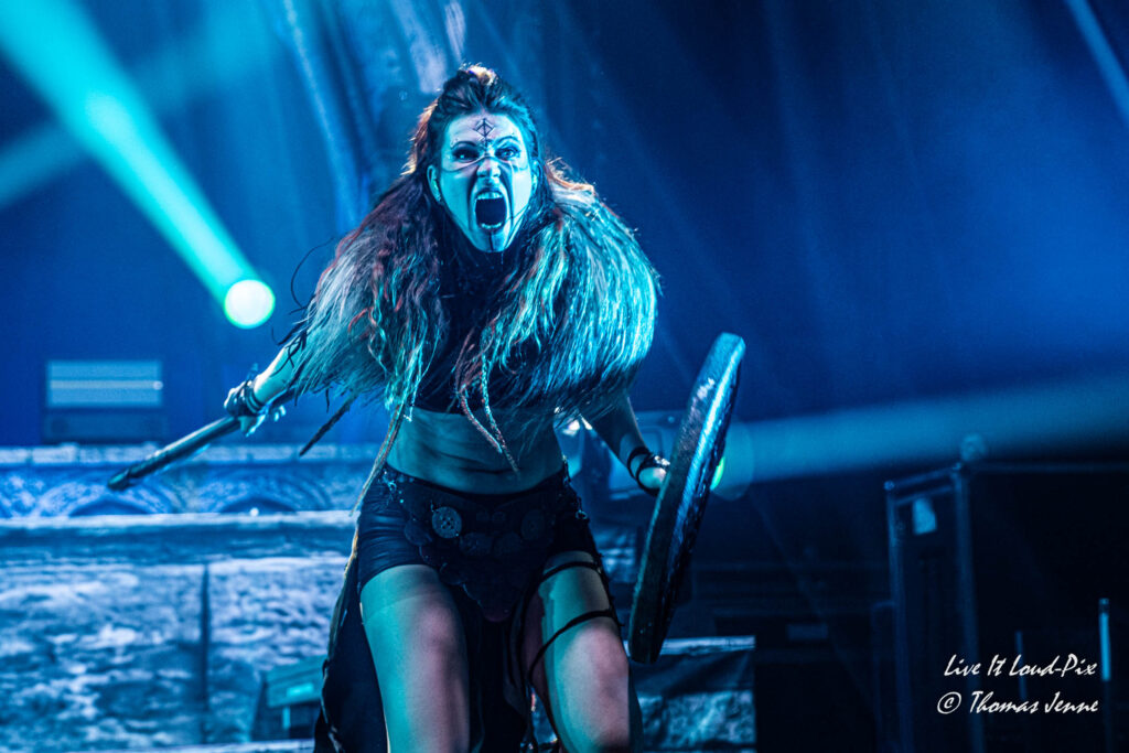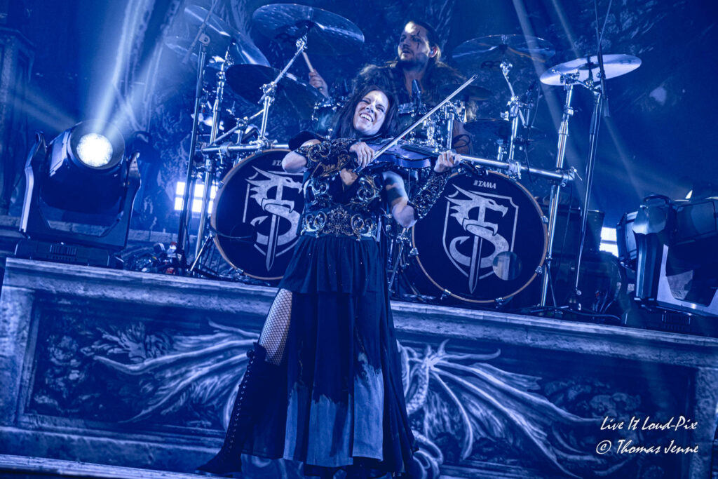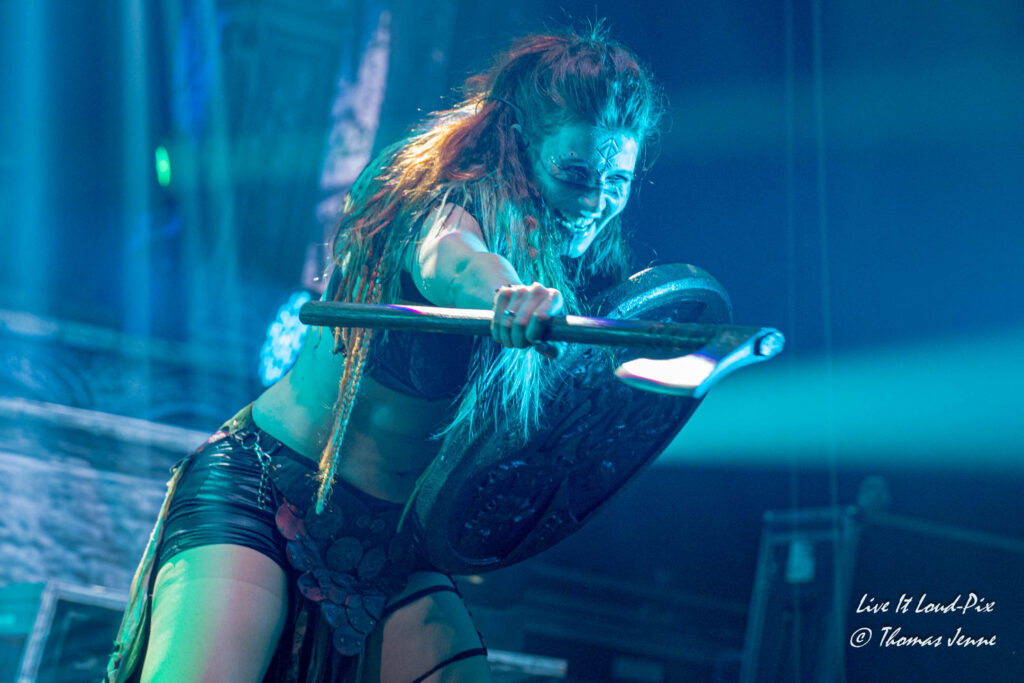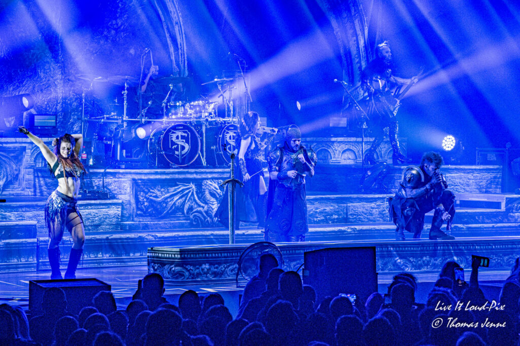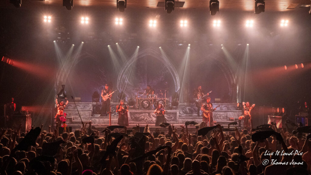 Die Songs und auch die Stimme von Frontfrau Melissa Boney sind bekanntlich deutlich im Symphonic Metal verankert, jedoch kann Frau Boney mit ihren tiefen Crowls auch von einem auf den anderen Moment auch mal ganz schnell das Beast rauslassen, wie sie bei „Jenny Of Oldstones“ eindrucksvoll beweist. Neben einigen eigenen Songs besteht die Setlist wie auch schon das Debutalbum hauptsächlich aus „vermetallten“ Neuinterpretationen von Filmmusik und Songs bekannter Künstler, wie z.B. „No Time to Die“ von Billie Eilish. Stimmungsmäßig ist das Publikum noch etwas verhalten, und so bleibt es während der Songs meist recht ruhig in der Halle, wohl auch weil viele Zuschauer die Songs bislang nicht kannten.