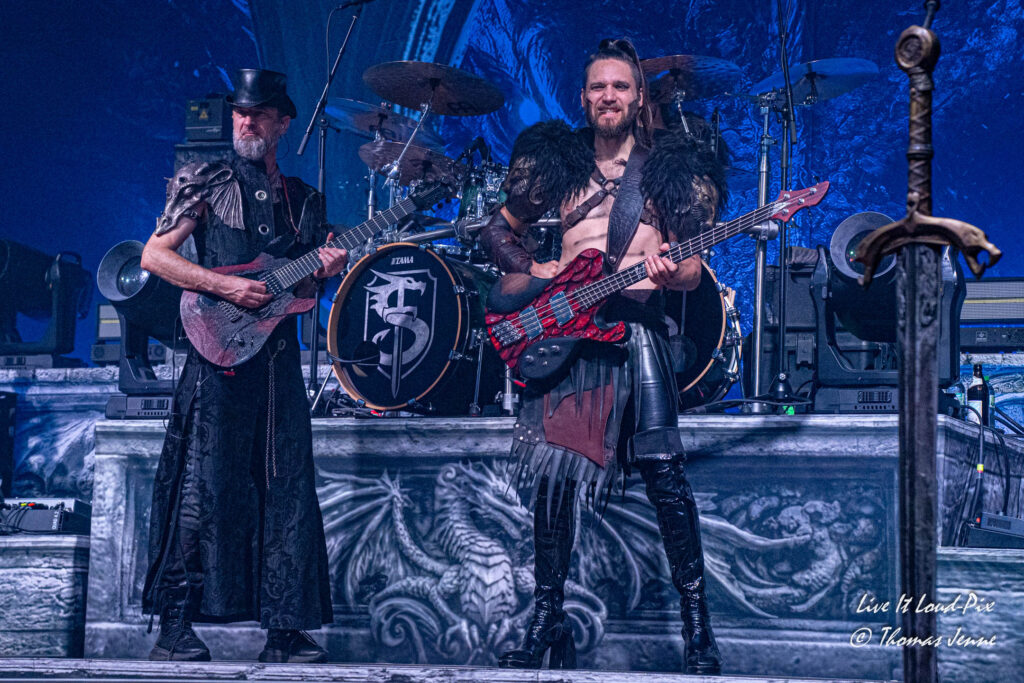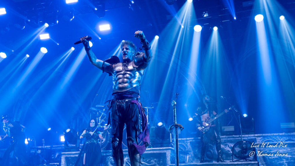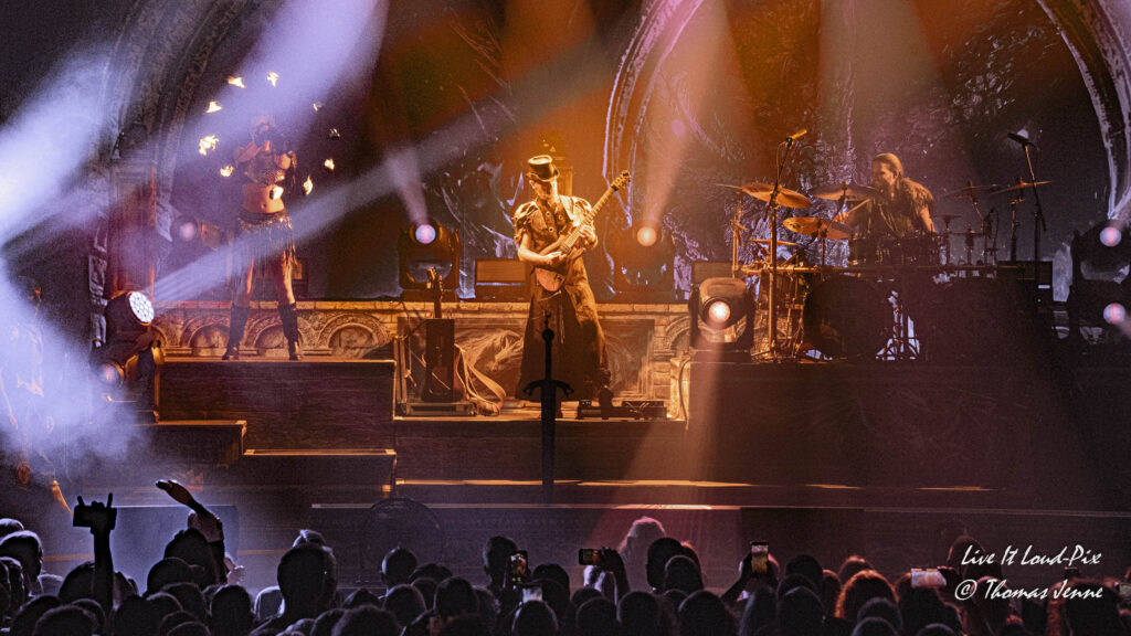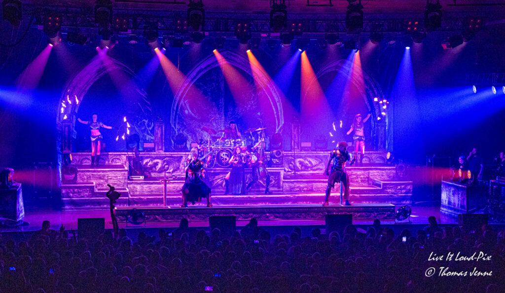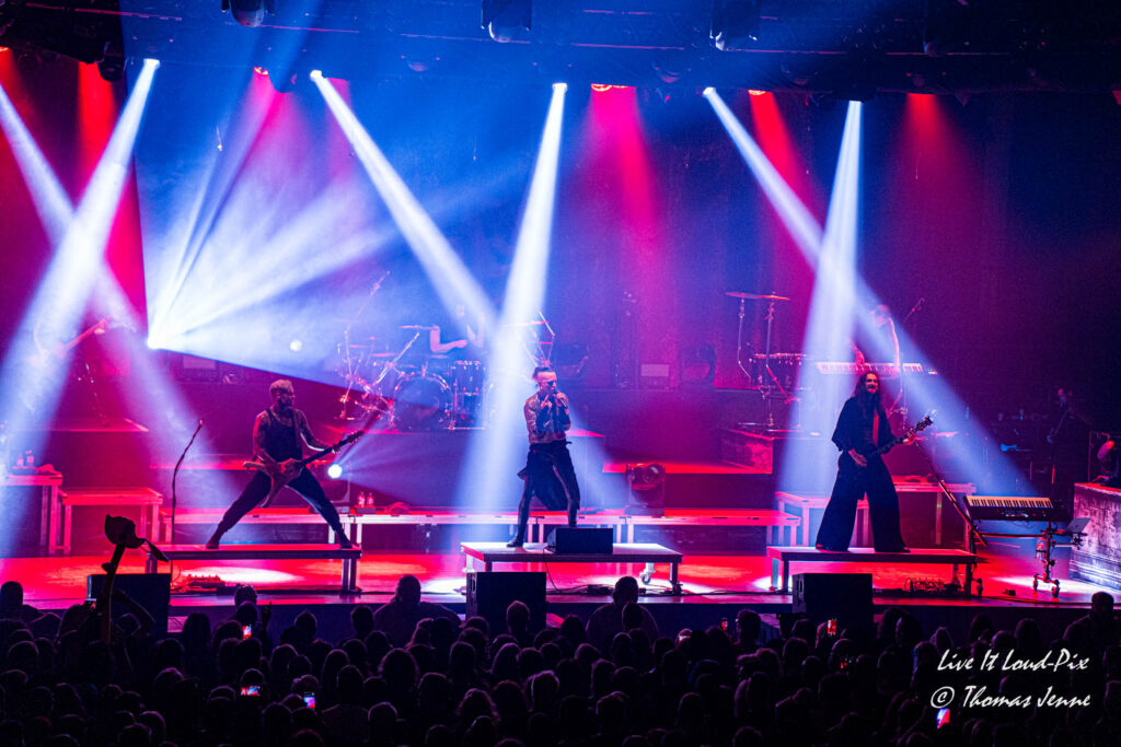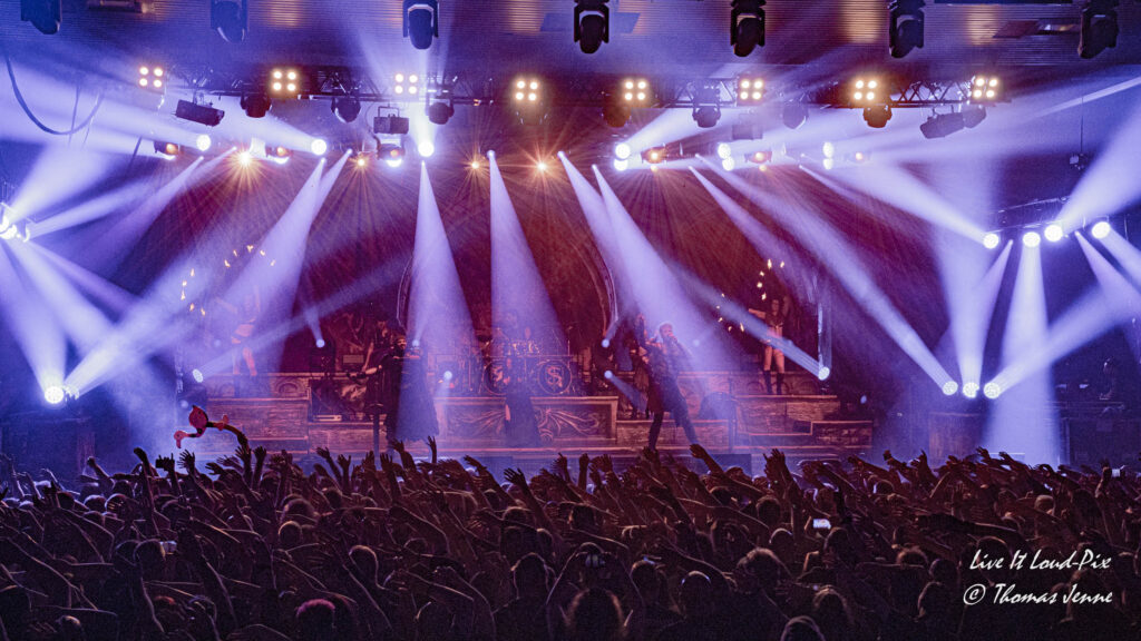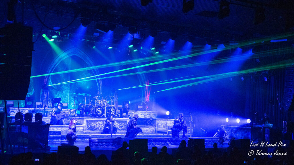 Die Songs und auch die Stimme von Frontfrau Melissa Boney sind bekanntlich deutlich im Symphonic Metal verankert, jedoch kann Frau Boney mit ihren tiefen Crowls auch von einem auf den anderen Moment auch mal ganz schnell das Beast rauslassen, wie sie bei „Jenny Of Oldstones“ eindrucksvoll beweist. Neben einigen eigenen Songs besteht die Setlist wie auch schon das Debutalbum hauptsächlich aus „vermetallten“ Neuinterpretationen von Filmmusik und Songs bekannter Künstler, wie z.B. „No Time to Die“ von Billie Eilish. Stimmungsmäßig ist das Publikum noch etwas verhalten, und so bleibt es während der Songs meist recht ruhig in der Halle, wohl auch weil viele Zuschauer die Songs bislang nicht kannten.