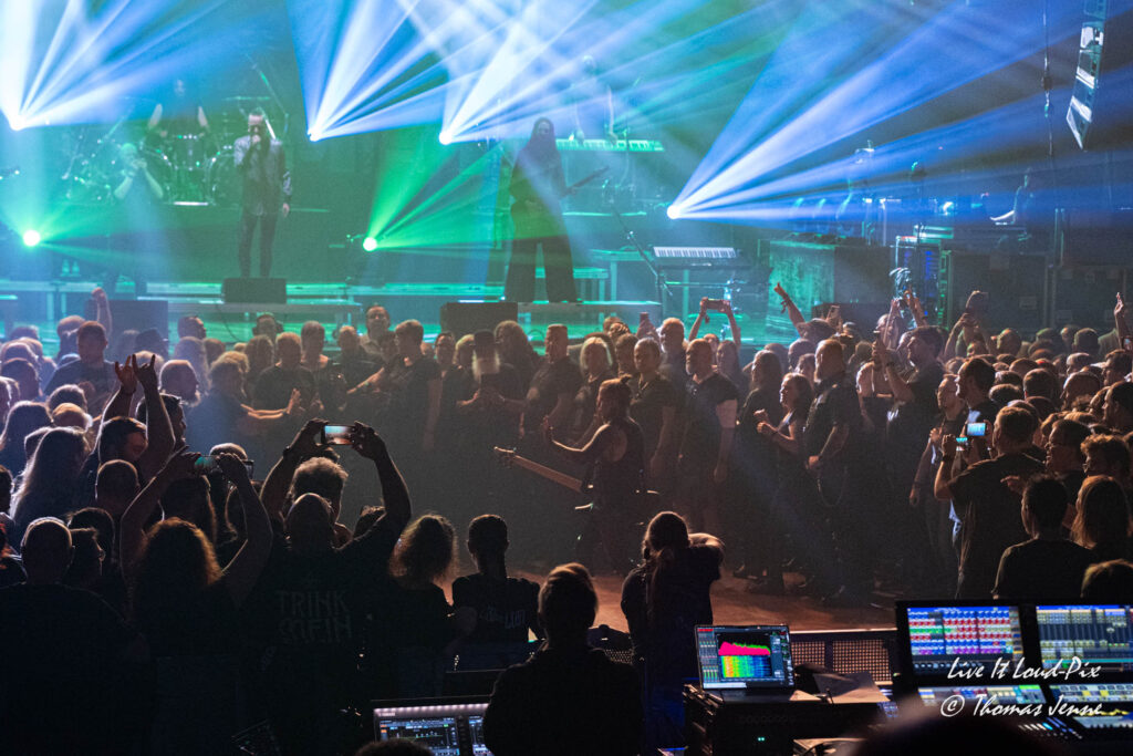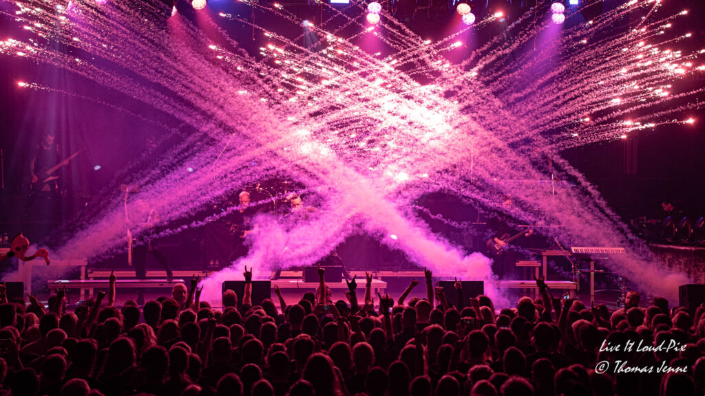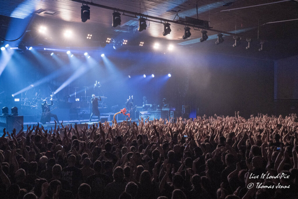 Den musikalischen Einstieg macht LOTL mit dem brachialen „Moonstruck“ und „I will die in it“ und Offenbach ging sofort richtig ab. Mit einer gelungenen Auswahl aus neuen Songs und alten Klassikern trefen LOTL genau die richtige Mischung aus der dunklen Magie des Dark Metall und der gute Stimmung verbreiteten Songs in ihrer Karriere. Natürlich nehmen auch einige Coversongs einen nicht unerheblichen Teil der Setlist ein. Hier ist natürlich das Iron Maiden- Cover von „Children of the Damned“ für die Metalfans eines der Highlights des Abends. Doch konnte der Song wie auch “ Smalltown Boys“ der Bronski Beat stimmungsmäßig nicht an „Schrei nach Liebe“ von der besten Band der Welt heranreichen, die diesen Song laut Chris „vor vielen Jahren mal für LOTL geschrieben haben“. Mit dem Song wollen die Hamburger Jungs ein politisches Zeichen gegen Rechts setzen, was bei den Offenbacher „LOSTis“, wie sich die Fans von LOTL ab dieser Tour nennen, auf offene Ohren stößt und extatisch abgefeiert wird.