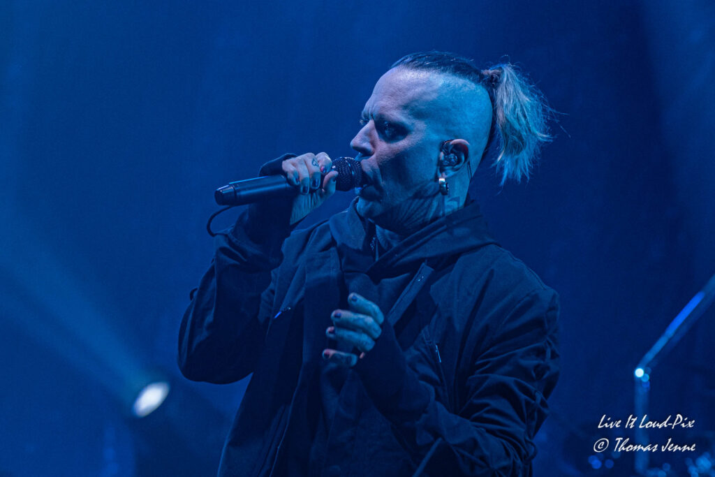 Sei es die Stadthalle, die er bei ihrem ersten LOTL- Auftritt in Offenbach überhaupt aufgrund des Hallengrundrisses ( „breiter wie tief“) mit einem Tik Tok- Format vergleicht, oder bei seiner Rettungsaktion für kollabierte Aufblas-Flamingos das Publikum zur Wiederbelebung animiert, Chris kommt jederzeit sehr sympathisch rüber – sollte man bei den teils tiefen Crowls und dem dusteren Erscheinungsbild nicht unbedingt erwarten ;-).