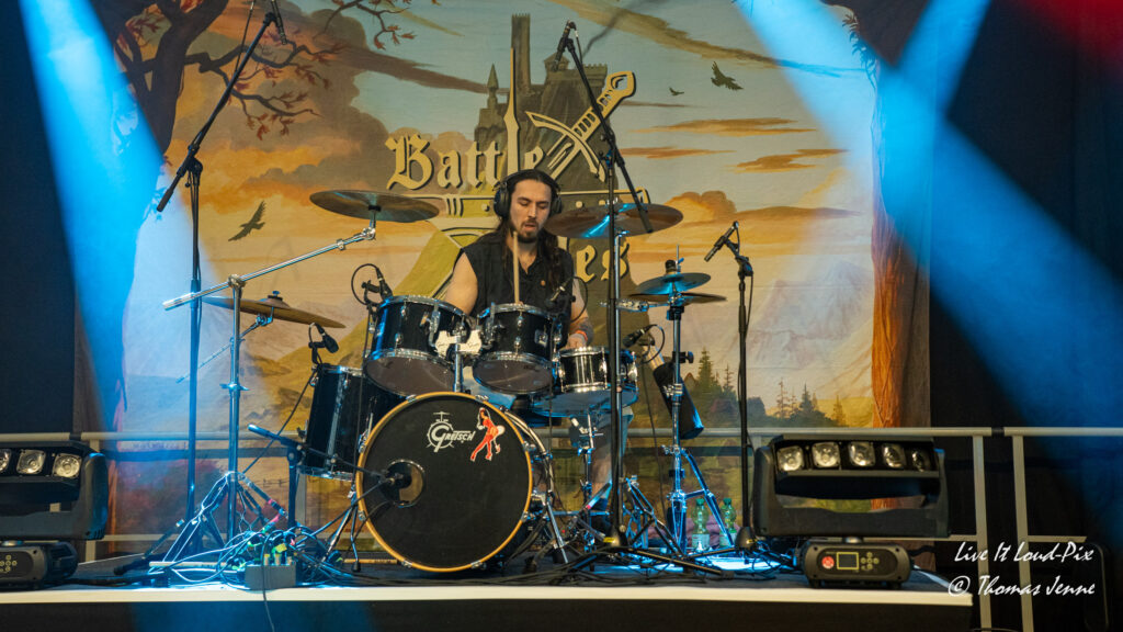Bereits um 12:30 gings musikalisch los und Battle Tales eröffneten das Festival mit einem Mix aus Pagan Metal und Power Metal. Bereits zu früher Stunde waren zahlreiche Zuschauer in der Halle, um sich die erste Band des Tages anzuhören.
