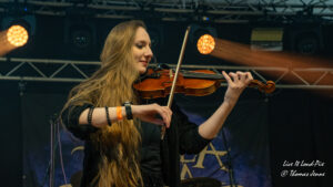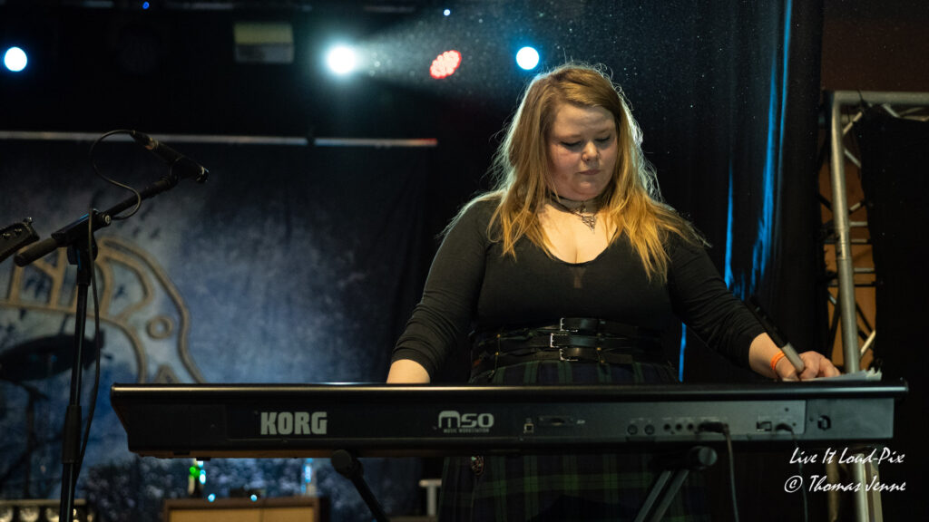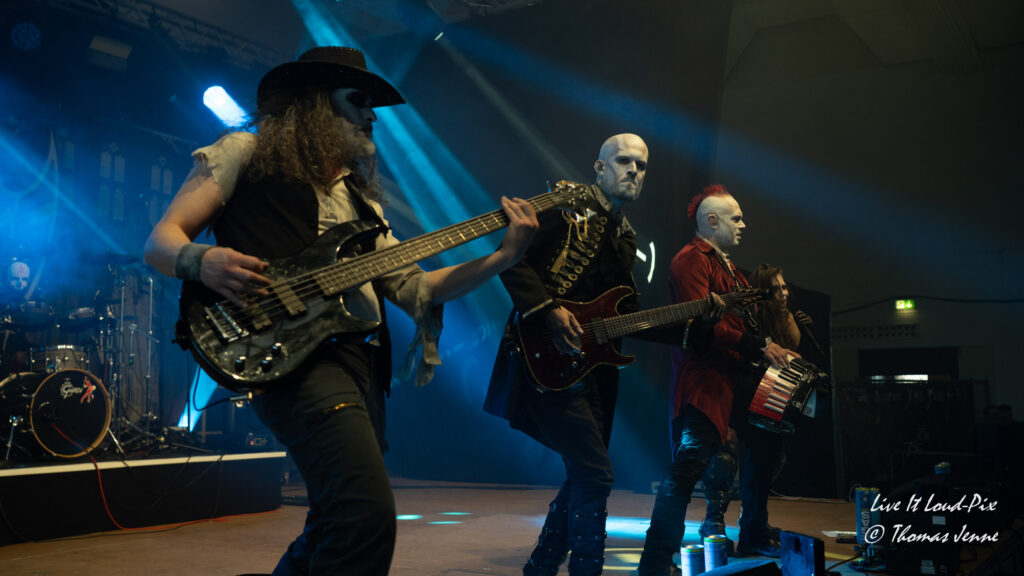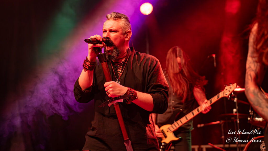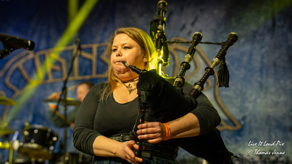 MIt Vansind ging`s im den hohen Norden mit einer mir bislang unbekannte Band aus Dänemark weiter. Die in Landessprache gesungenen Songs kamen eher für Freunde von Folk Metal oder Viking Metal in Frage. Neben den für unsere Ohren etwas ungewöhnlich klingenden Gesang in nordischem Dialekt trugen vor allem die Flöte und der Dudelsack von Keyboarderin zu einem eigenständigen Sound bei. Die Vocals teilten sich „Krieger“ J. Asgaard und Bandkollegin Line Burglin am Mikro. Die dunklen Parts und der hohe klare Gesang bildeten zwar einen guten Kontrast, wollten aber irgendwie den Funke bei mir nicht so richtig überspringen lassen. Obwohl mich der Sound von Mittelalterrock inzwischen wirklich begeistern kann, trafen die Songs an diesem Tag nicht ganz meinen Geschmack und auch in der Halle war die Stimmung eher zurückhaltend, wohl auch, weil die wenigsten Zuschauer die Songs der Band kannten, geschweige denn mitsingen konnten.