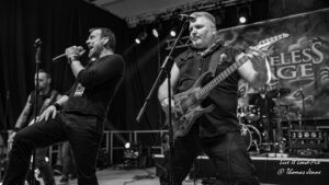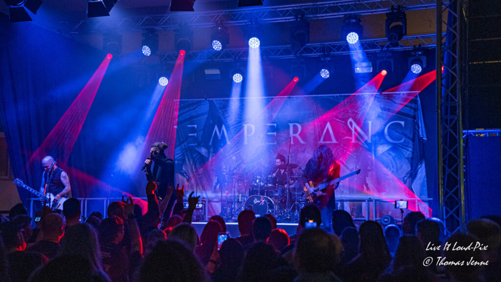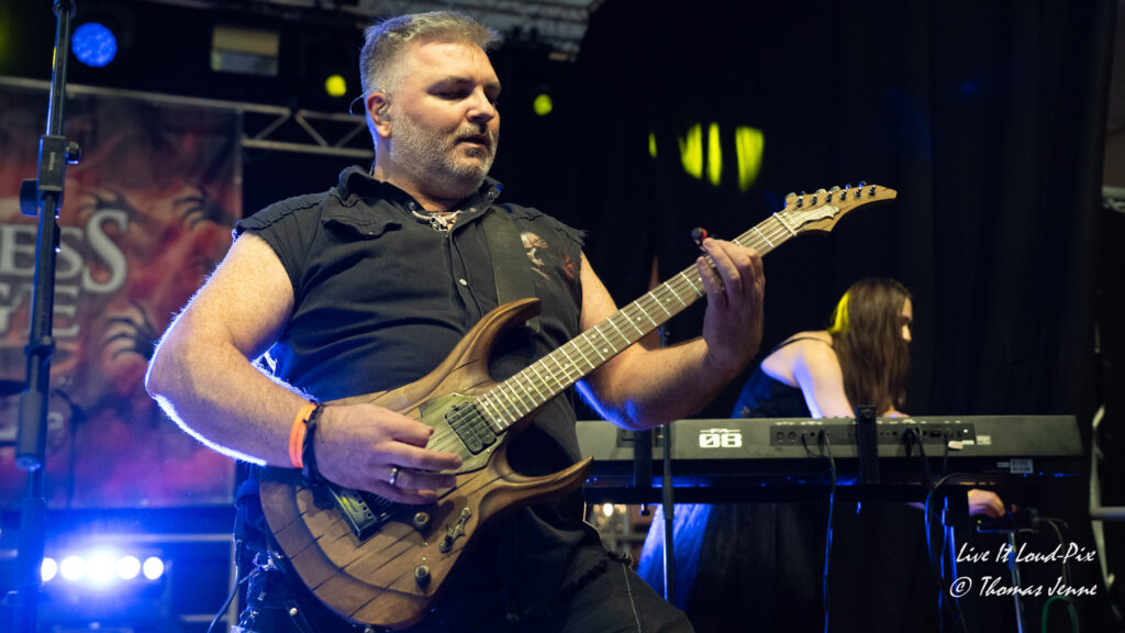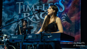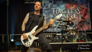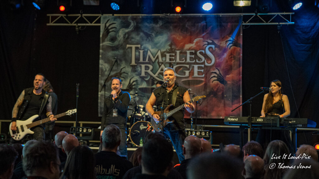 Bei der dritten Band des Tages Timeless Rage im Schwarzwald gab`s erstmals einen richtigen Stimmungspeak im Publikum. Die Band aus Villingen-Schwenningen mit Frontmann Nicolaj Ruhnow (u.a. Ex-Tokyo Blade) schaffte trotz abermaliger Soundprobleme zu Beginn und dadurch entstehender langer Pause das Publikum erstmals mit ihrem Mix aus Power- und Symphonic Metal zum Mitsingen zu animieren. Das lag sicherlich neben einem guten Sänger am Mikro auch an den recht eingängigen Songs der Band, die deutlich mehr Metalfans ansprachen als die beiden Bands zuvor. Auch Keyboarderin Anna Keil konnte ihren Beitrag zu einem gelungenen Auftritt beisteuern.