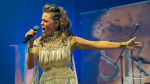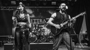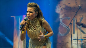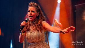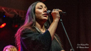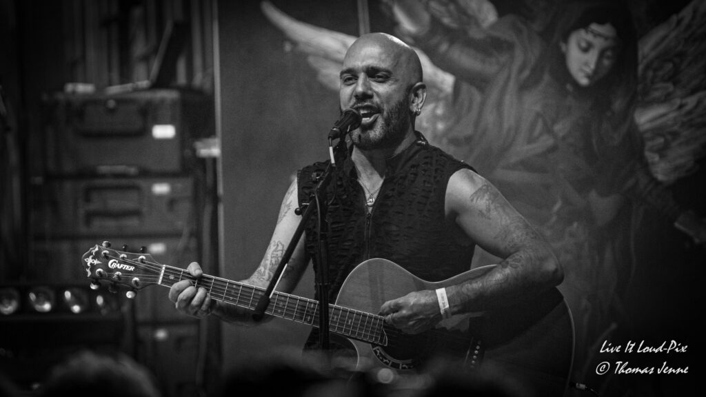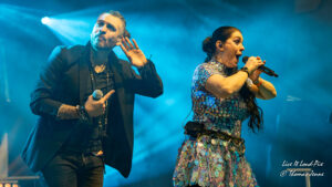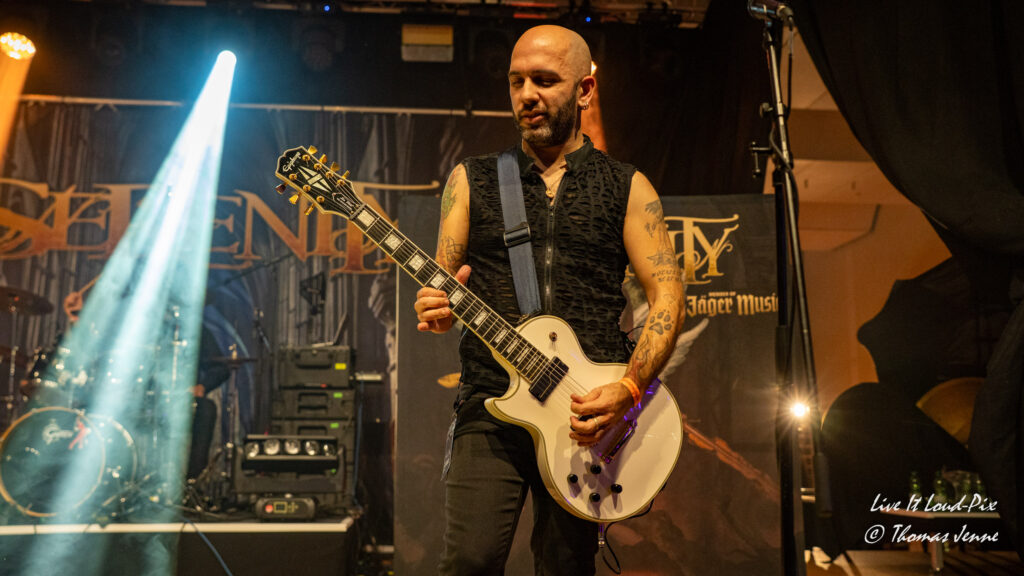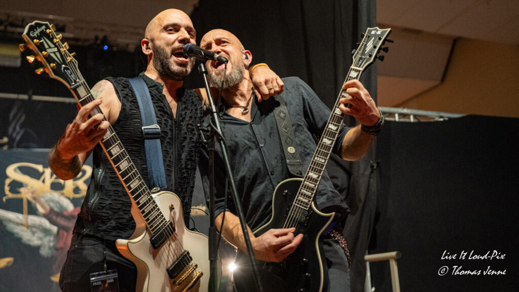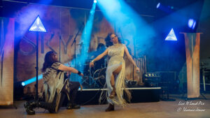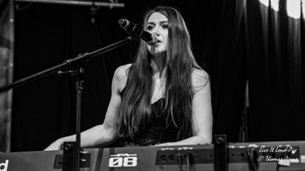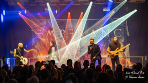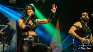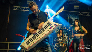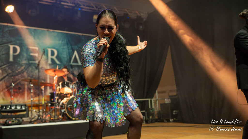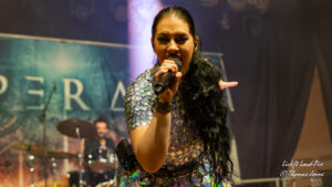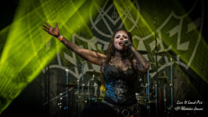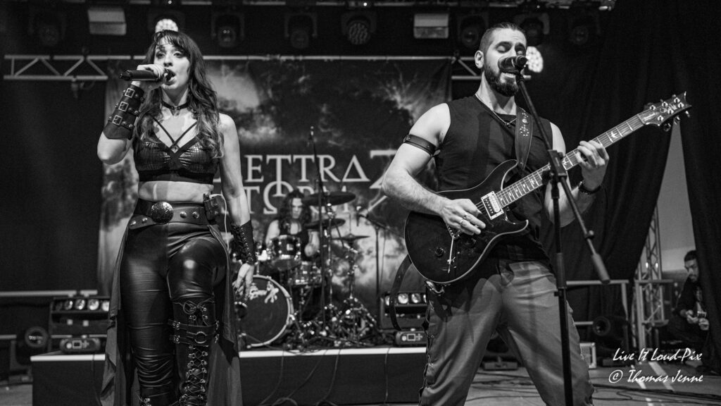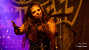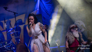 Doch wird die italienische Bandvon Ihren Fans natürlich vor allem wegen des Gesangsduo Michele Guaitoli (u.a. Vision Of Atlantis) und der US-Sängerin Kristin Starkey geliebt, die im Mittelpunkt der Band stehen Kristin, übrigens mit abgeschlossenem Studium und Doktortitel dekoriert, bringt viel Erfahrung aus ihren Auftritten in der Oper in den USA mit in die Band. Ihre opernhafte Stimme prägt an diesem Abend den melodische Symphonic-Metals und unterstreicht mit ihrem Glitzerkleid zusätzlich den glamourösen Charakter des Auftritts. Bei „I am the Fire“ zeigt sie erstmals, zu welchen Höhenlagen sie Ihre Stimme treiben kann, sodass die Gläser an der Theke des Ausschanks zu platzen drohten.
