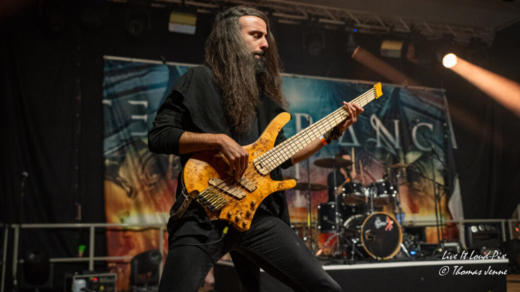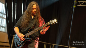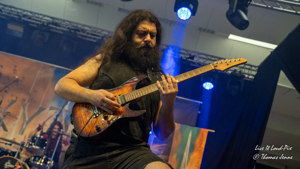 Mit seinem insgesamt dritten Auftritt während des diesjährigen NoSax angelt sich Marco Pastorino mit Temperance mit großer Wahrscheinlichkeit den Titel „Workoholic des Festivals“, denn neben den Auftritten als Sänger und Gitarrist war Marco auch längere Zeit am Merchstand für den Verkauf von Fanartikeln zuständig und hat sicherlich auch wieder den Bandbus nach dem Festivalende in Richtung Italien gesteuert. Unglaublich die Vielseitigkeit des Italieners, der neben der Gitarre bei Temperance auch mal schnell die Vocals übernimmt.