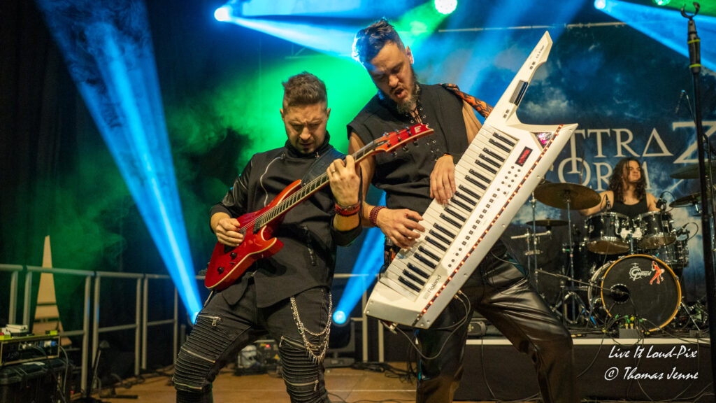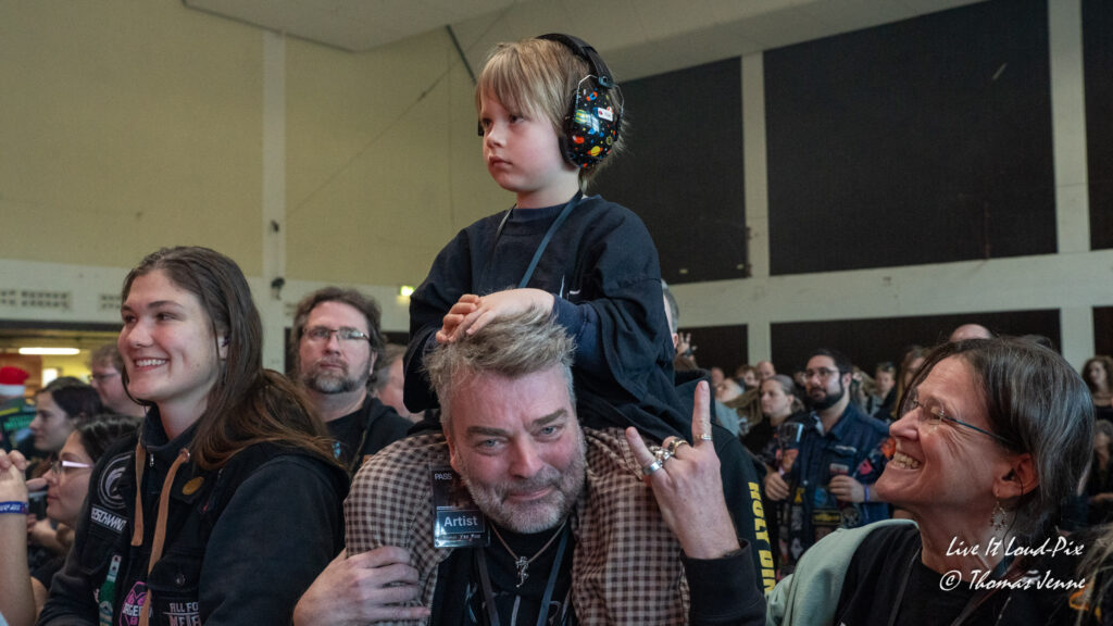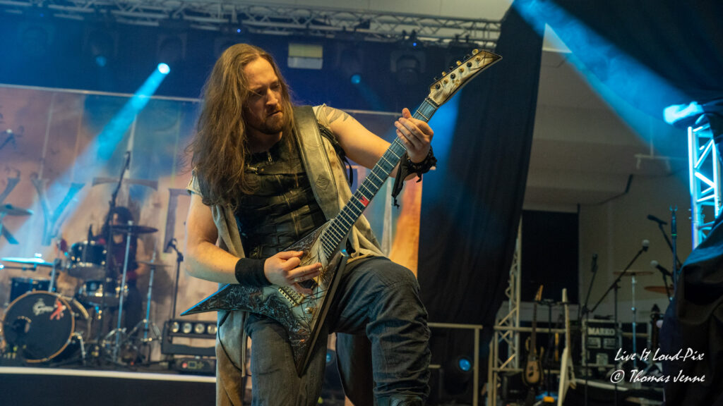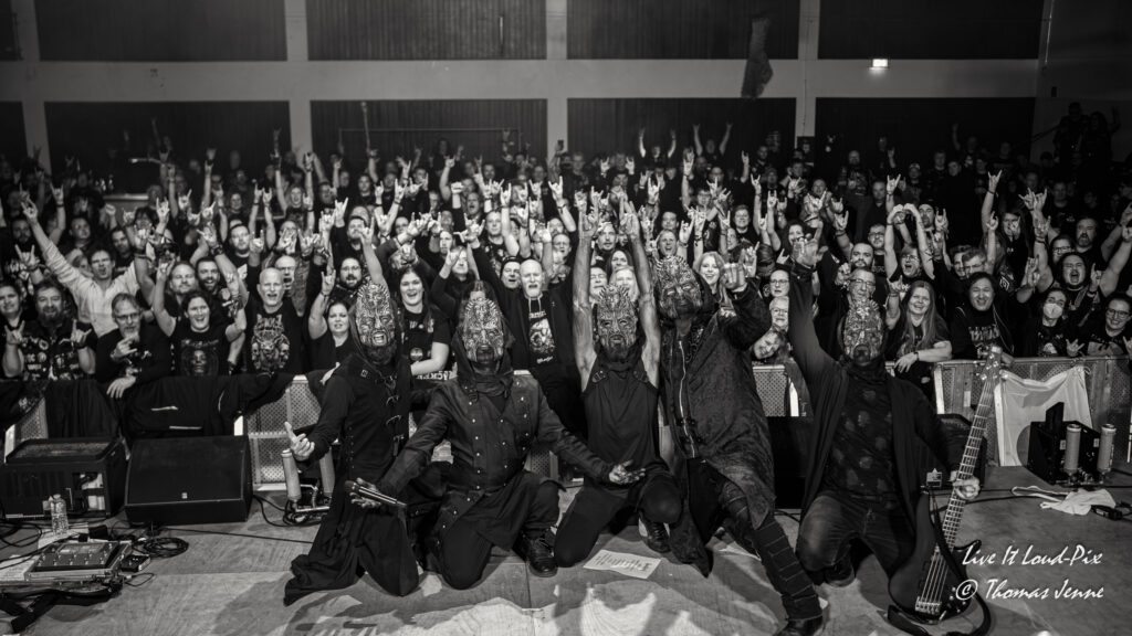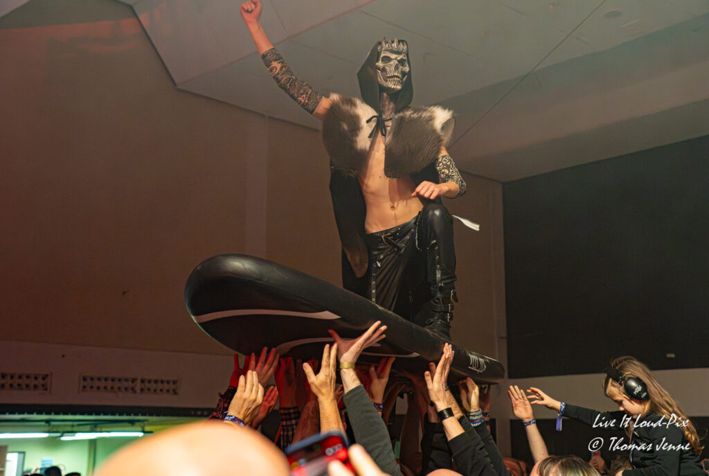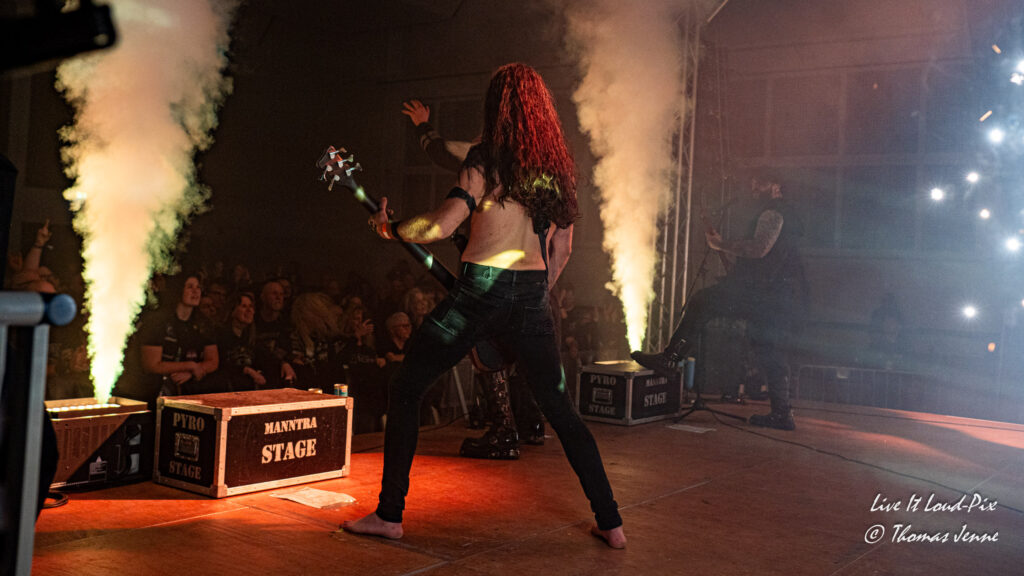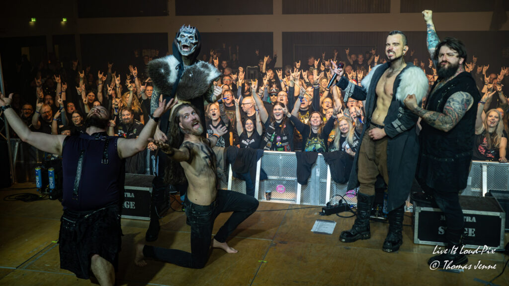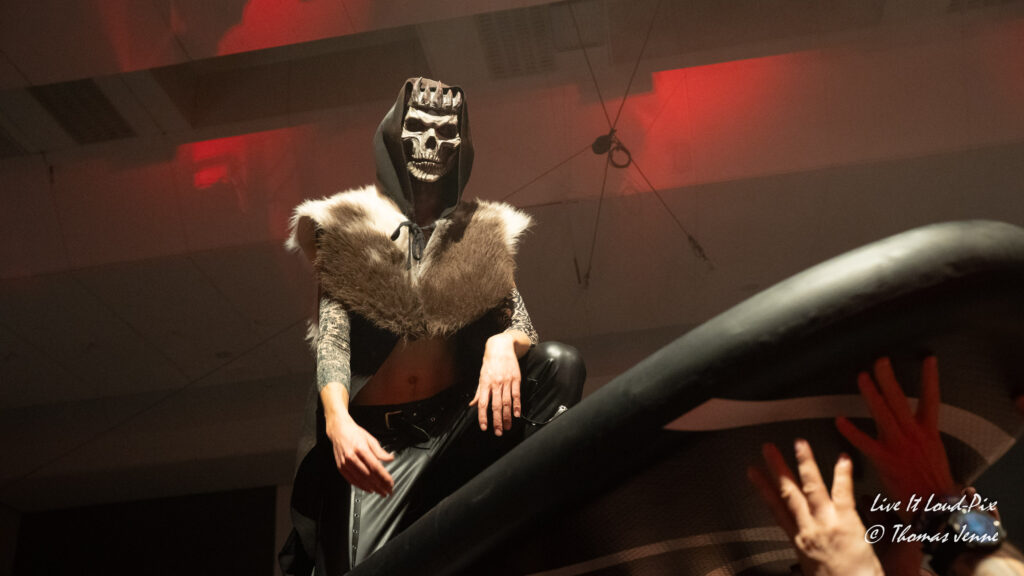 Mit energiegeladenen Songs, harten Riffs und eingängigen Melodien die zum Mitsingen einladen, begeisterten die 5 Musiker die Metalfans die 400 Fans. Den Anfang machte der Titeltrack des aktuellen Albums „Titans“, mit dem Manntra im Februar 2026 auf Headlinertour gehen. Sofort war das Publikum da und unterstütze die Band lautstark, ein gelungener Start in die nächsten 90 Minuten Showtime. Ob mit aktuellen Krachern wie „Teuta“ oder „Heart of The Storm“ (mein Highlight), oder den alten Klassikern wie „Ori Ori“ oder „Lipa“, Manntra brachte die Hütte nach einem langen Festival richtig zum Wackeln und es herrschte in der Halle zum Finale nochmals ausgelassene Partystimmung. Hüne und Gitarrist Baren King war mit seiner Maske natürlich neben Frontmann Marko Matijević Sekul das optische Aushängeschild, ob mit der 2. Gitarre, an der Flöte oder beim Surfen über den Köpfen der Zuschauer, er machte in jeder Position eine gute Figur.
