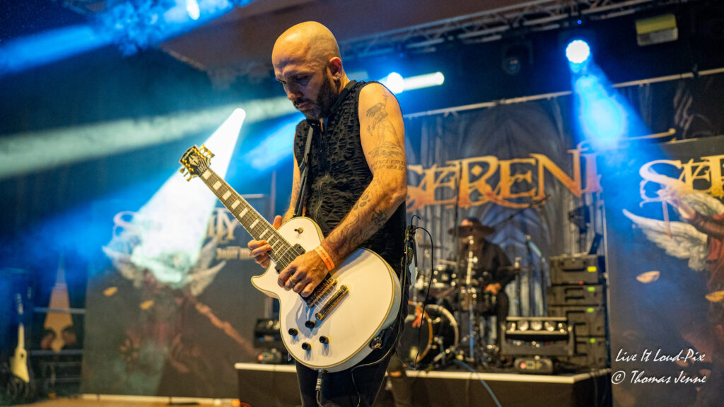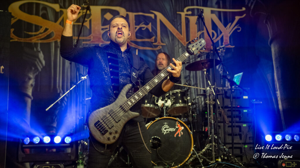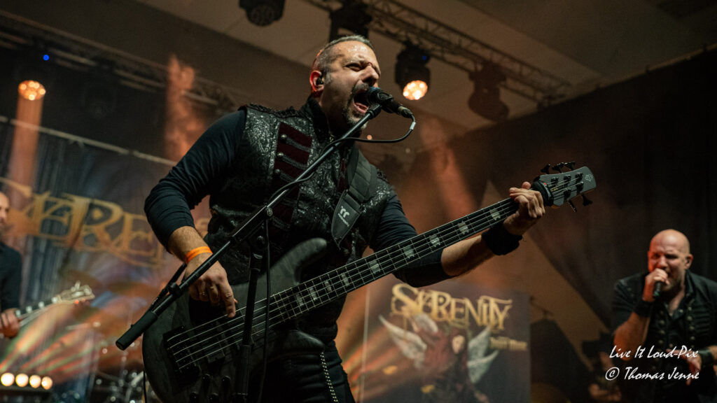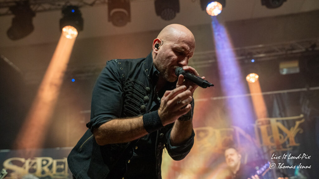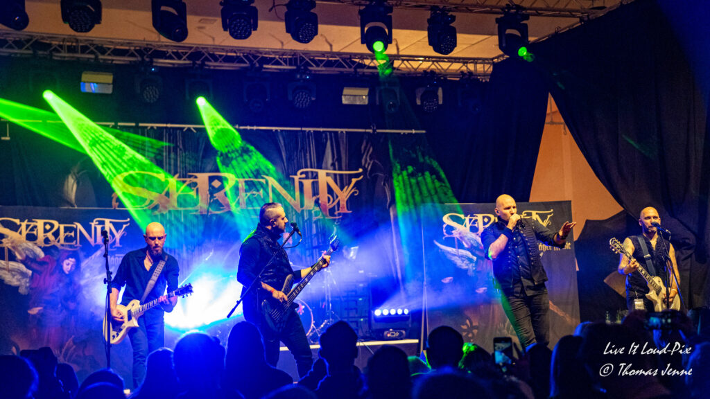 Mit Serenity folgte das erste Highlight des Tages und auch die Stimmung in der Halle stieg nun merklich an. Die Symphonic-Metaller aus Österreich legten dank ihrer inzwischen auch schon fast 25- Jährigen Bühnenerfahrung eine deutlich professionellere Performance auf die Bühne. Mit Georg Neuhauser und Gitarrist Marco Pastorino hat die Band aus Tirol zwei Vollprofis in ihren Reihen, die nicht nur für Ihre Auftritte mit Serenity in der Szene bekannt sind. Melodischer Symphonic Metal mit eingängigen Songs sind die Kernkompetenz von Serenity, thematisch verankert in der Welt von Sagen und Königen aus dem Mittelalter.
