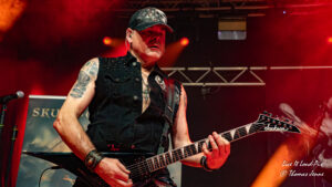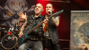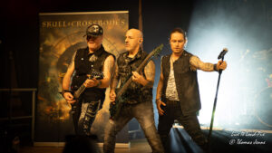Die aus Villingen -Schwenningen stammende Band Skull & Crossbones profitierte nun im Anschluss von der Absage von Derian und rutschte einen Platz im Linup nach oben, bekam so auch etwas mehr Zeit wie ursprünglich veranschlagt um ihr kürzlich erschienenes Album „Time“ ausgiebig zu promoten. Nachdem ich die Band im Oktober als Support von Q5 in Bruchsal erstmals live erleben konnte, zeigten die fünf Musiker um Frontmann Tobi Hübner in Runkel einen nochmals deutlich stärkeren Auftritt. Mit Songs wie dem saustarken „Echoes Of Eternity“ oder dem etwas progressiveren „The Illusionist“ konnte mich die Band richtig überzeugen und waren einer der positiven Überraschungen des Festivals für mich. Auch das Publikum war angetan von den Songs vom „Time“-Album, sodass der Auftritt bis auf die noch immer herrschenden Soundprobleme mehr als gelungen bezeichnet werden kann. Ich werde die Band künftig auf jeden Fall dem Schirm behalten.