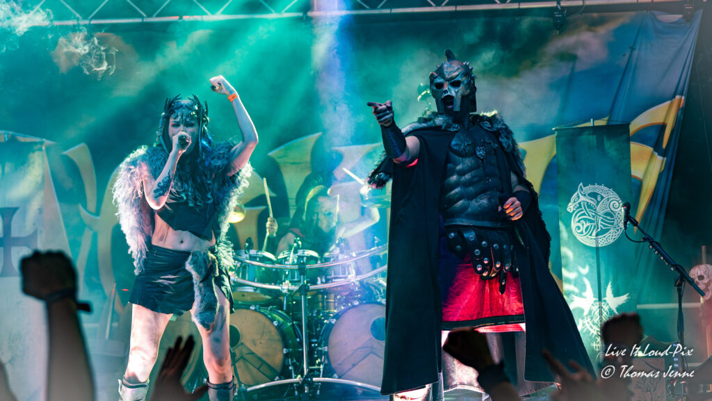 Das Finale am Samstagabend gehörte dann ganz dem Tribun, dem Gladiator, Crusader und dem Viking, besser bekannt als die Warkings, die mit ihrem Power Metal eine phantastische Show auf die Bühne zaubern. Mit ihren energiegeladenen Songs über die Schlachten und Kriege aus Zeiten der Römer bis ins Mittelalter begeisterten die vier Krieger das Publikum nachhaltig. Die Erweiterung der Band um Morgana Le Fay eröffnet auch an diesem Abend den Warkings nicht nur neue musikalische Facetten, sondern hebt auch die Bühnenperformance auf ein neues Level. Ihre Präsenz sorgt für Dynamik, Abwechslung und zusätzliche Spannung im Live-Auftritt. Highlight stellen die Songduelle in „Armageddon“ oder bei „Sparta“ zwischen Morgana und dem Tribun dar.