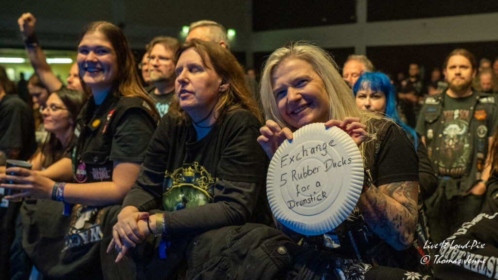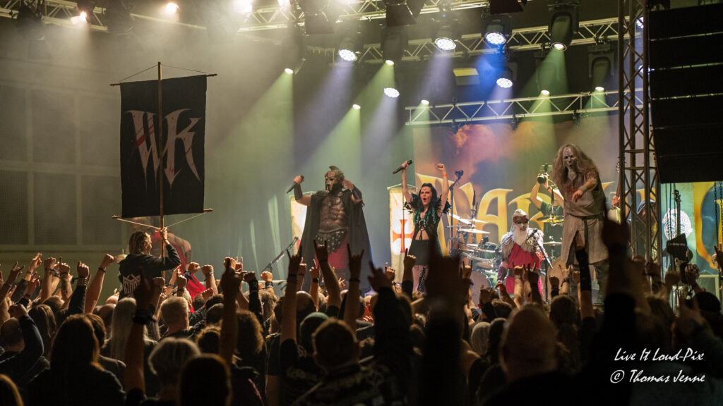 Leider verpasste ich den mittleren Teil der Warkings-Show und musste mich um meine Frau kümmern, die ausgerechnet zur Primetime mit Kreislaufproblemen zu kämpfen hatte und nach einem langen Tag in der Halle nach kurzem Blackout frische Luft benötigte. So ging leider ein Teil der Show an mir vorbei und erst zum Finale waren wir wieder in der Halle, glücklicherweise noch rechtzeitig um die letzten Songs einer grandiosen Show noch mitzubekommen. „Sparta“ zusammen mit den Crowls von Morgana schaffte Gänsehaut und Runkel dankte den Warkings in Form lauter Schlachtgesänge und „Ahu`s“. Die Begeisterung war unüberhörbar und die Metalheads hatten noch längst nicht genug der Schlachten.