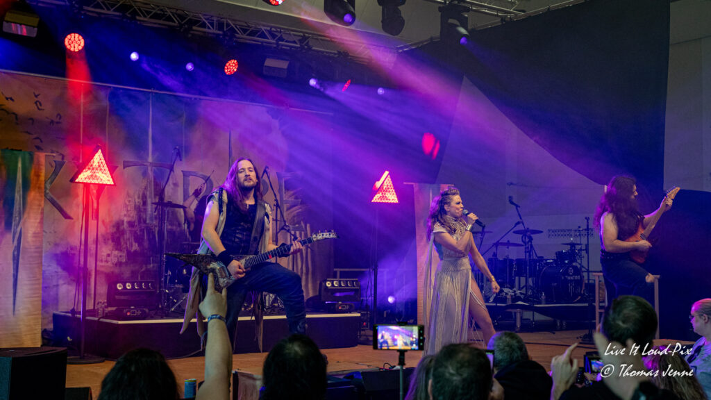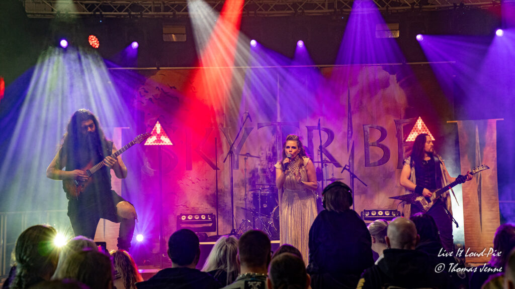 Die folgenden Skytribe hatte ich mir kurz mal im Vorfeld angehört. Die neue Symphonic Metal Band aus Deutschland hatte vor einem Jahr ihre Debut-Single „Kingdom of the Sky“ veröffentlicht und im Juni mit „Legacy of Live“ nochmals nachgelegt. Leider konnte mich Frontfrau Dorothée Kahler mit Ihrer Stimme bis auf die beiden genannten Singleauskopplungen nicht richtigüberzeugen. Zu oft klangen die Töne etwas zu schrill und live konnte Sie das Niveau der beiden Singles nicht über den gesamten Auftritt halten. Aber Skytribe stehen ja auch erst am Anfang ihrer Bandkarriere, da muss man mal abwarten was die Zukunft bringt.