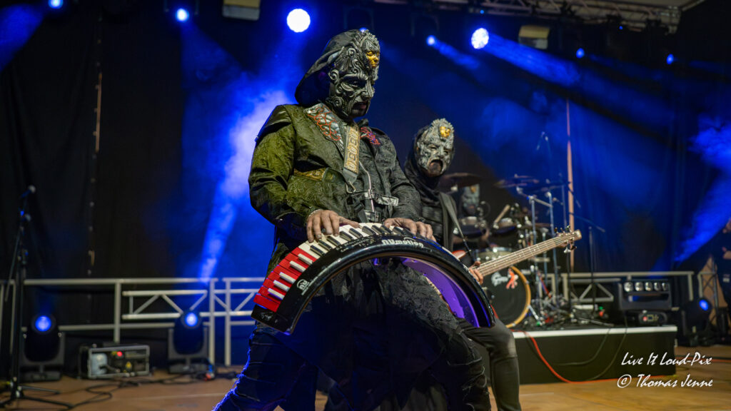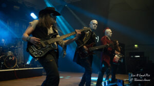 Mit den im Fahrwasser von Powerwolf schwimmenden Apostolica ging´s dann wieder etwas mystischer zu. In dunkle Gewänder gekleidet, die Gesichter geheimnisvoll hinter Masken versteckt, kamen die Italiener um den sagenumworbenen Frontmann Ezekiel auf die Bühne. Mit ihrem melodischen Symphonic Power Metal mit leicht sakralen Touch kamen Apostilica in Runkel sehr gut an und ernteten ordentlich Applaus. Apostolica inszenierten ihre Musik stark symbolisch und historisch aufgeladen, die teils in Latein gesungenen Textstrophen verstärkten den epischen und religiösen Charakter der Show zusätzlich.