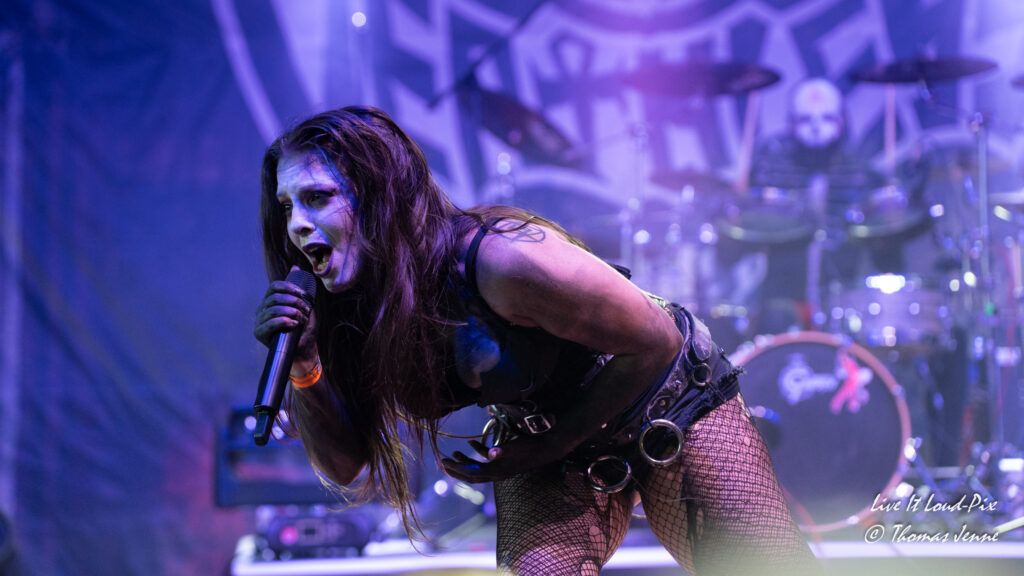 Mit den Horror-Metaller Deathless Legacy folgte meine persönliche Überraschung des Festivals, zumal ich mich im Vorfeld neben den beiden Headlinern ganz besonders auf die Italiener mit ihrer spektakulären Show gefreut hatte. Mit ihrer phenomenalen Videosingle „Sanctified“ und ihrem aktuellen Album „Damnatio Aeterna“ hatten mich Frontfrau Eleonora „Steva“ Vaiana und ihre Mitstreiter im Vorfeld mächtig beeindruckt.